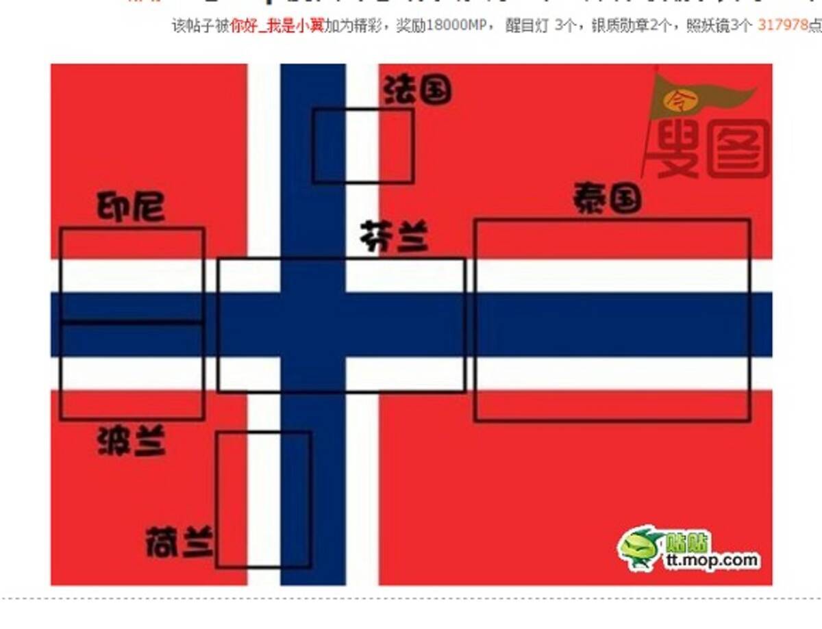 ノルウェーの国旗があらゆる国を包括していると 中国で話題に 11年12月8日 エキサイトニュース